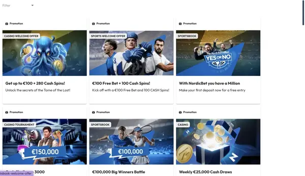 Kampanjamme yhdistävät kasinopalkintoja, vedonlyönnin etuja ja pokeripaketteja, ja ehdot näytetään selkeästi ennen kuin osallistut. Saatat nähdä NordicBet bonus -tarjouksen kampanja-alueella, ja osa eduista voi vaatia kampanjakoodin aktivoitavaksi kassalla. Järjestämme myös säännöllisiä leaderboardeja ja verkostotapahtumia, jotka liittyvät valittuihin peleihin tai vetotyyppeihin. Jos etsit NordicBet casino no deposit bonus -etua, tarkista kampanjasivu, sillä saatavuus voi muuttua.