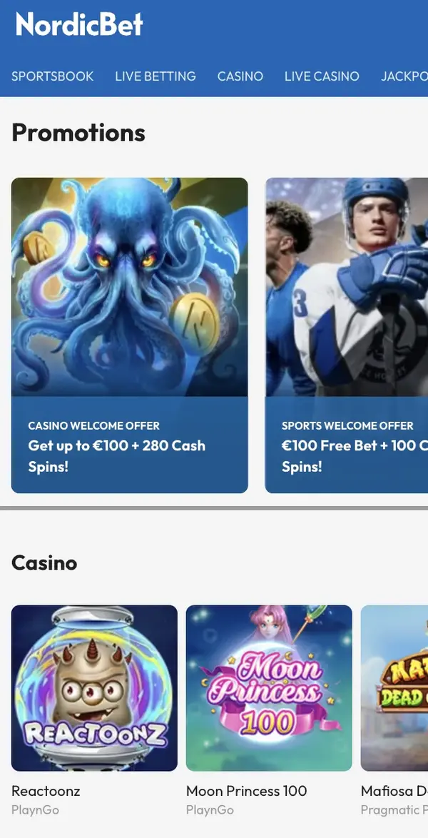 Jos vertaat NordicBet-kasino-kokemusta muihin mobiilikasinoihin, huomioi, että pyöritämme myös kampanjoita, jotka yhdistävät kasinon ja urheilun. Esimerkkejä ovat Drops & Wins valituissa Pragmatic Play -peleissä, Weekly Casino Rewards -edut, jotka lähetetään sähköpostiisi, sekä vedonlyönnin ominaisuudet kuten Early Payout ja Bore Draw Money Back. Uusille pelaajille NordicBet-bonus-vaihtoehdot kattavat kasinon, sportsbookin ja pokerin sen mukaan, mitä haluat pelata ensin.